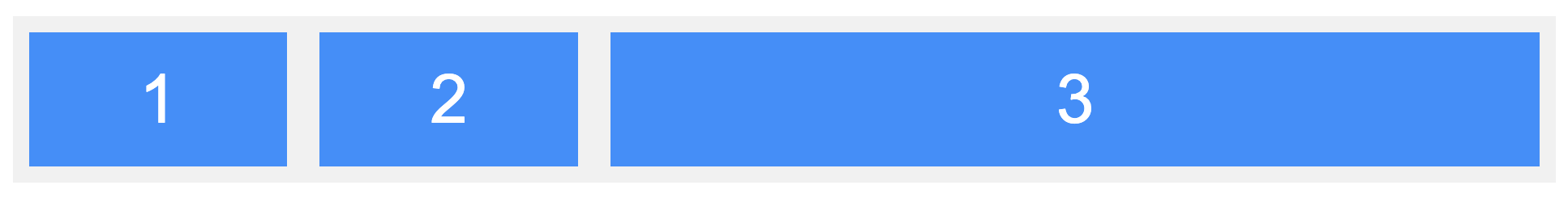 <div class="flex-container"> <div style="flex-grow: 1">1</div> <div style="flex-grow: 1">2</div> <div style="flex-grow: 8">3</div> </div>